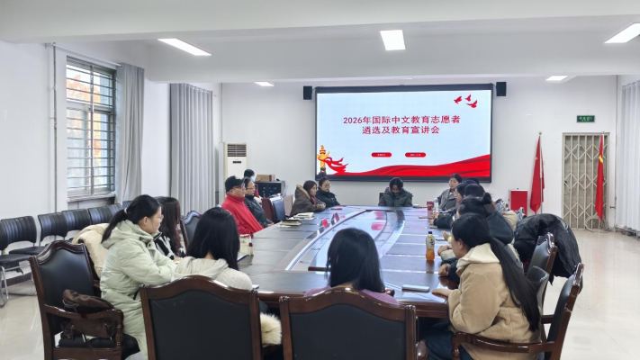 12月3日,孔院中心在学院会议室举行了2026国际中文教育志愿者遴选及教育宣讲会。中心主任梁卫格、副主任杨涛、汉推办公室王雨霏老师出席、我校2025级国际中文教育专业硕士研究生全体同学参加了此次宣讲会。