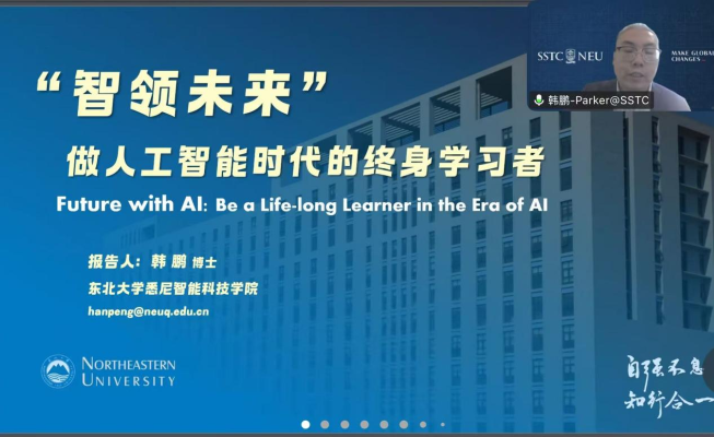 为对接教育数字化转型需求,深化跨文化学术交流,2025年11月27日,学院特邀东北大学悉尼智能科技学院韩鹏老师做主题讲座。讲座以“‘智领未来’——做人工智能时代的终身学习者”为题,聚焦人工智能为代表的新技术如何重塑社会。本次讲座由闫屹院长主持。闫屹院长在开场白中指出,人工智能正深刻变革高等教育领域,师生需主动适应技术浪潮,并援引教育部部长怀进鹏的文章观点,强调AI与大数据在教育数字化转型中的核心作用。