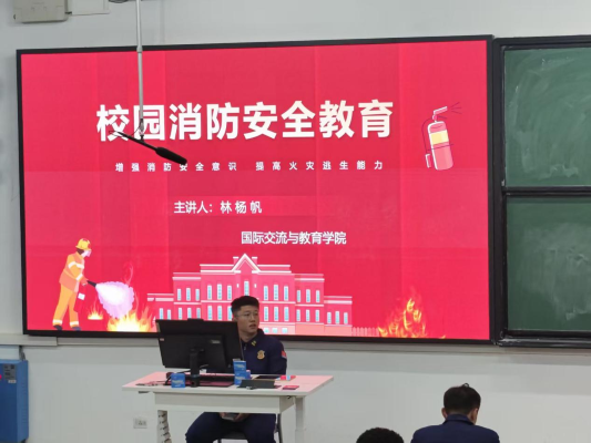 11月20日下午,为增强师生消防安全意识,提升应急避险能力,国际交流与教育学院联合学校党委保卫部、保定市东风路消防救援站在河北大学本部第九教学楼206室成功举办校园消防安全教育讲座。消防科科长周新兵、学院学生管理科老师和留学生参加了此次讲座。