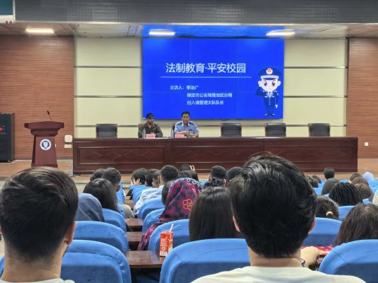 随后,保定市莲池区公安分局出入境管理大队队长李治广警官为2025级新生讲授开学第一课——法治教育·平安校园。他首先对留学生的到来表示欢迎,并提出要求:留学生不仅代表自己更代表自己的国家,要注意个人行为,努力学习知识,必须遵守中国法律,互相尊重,和平相处,从而顺利完成学业。