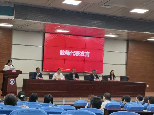 教师代表张颖老师对新同学寄予厚望。第一,博学慎思,追求真知,保持好奇之心,勇于提问,勤于思考。第二,跨越文化,拥抱世界,在对话中增进理解,在合作中消除隔阂。第三,勇于探索,敢于创新,积极参与科研项目、学术竞赛和科研实践。第四,修身立德,健全人格,注重个人品德的修养。