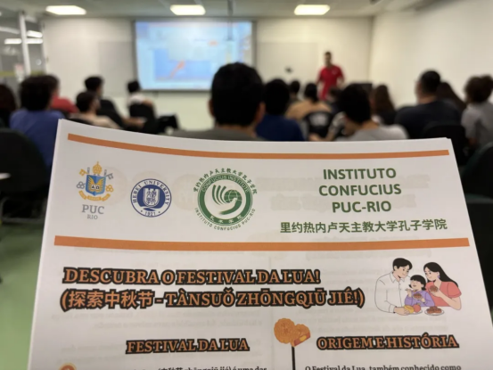 活动在热情洋溢的开场致辞中拉开帷幕。数学所学术协调员娜拉·博布科女士回顾了今年六月“端午节”文化活动的精彩内容,并鼓励大家以中文为桥梁,深入探索中华文化的博大精深,引发了在场观众的强烈共鸣。 随后,孔院段老师系统介绍了中国国庆节的历史渊源与当代庆祝方式,并与巴西国庆节进行对比,激发学生们积极分享观点与见解。在中秋文化介绍环节,孔院自制的短片《中秋节》通过唯美画面与深情讲述,将“嫦娥奔月”的古老传说、月饼的文化寓意以及团圆佳节的情感内涵娓娓道来,令巴西师生沉浸其中。